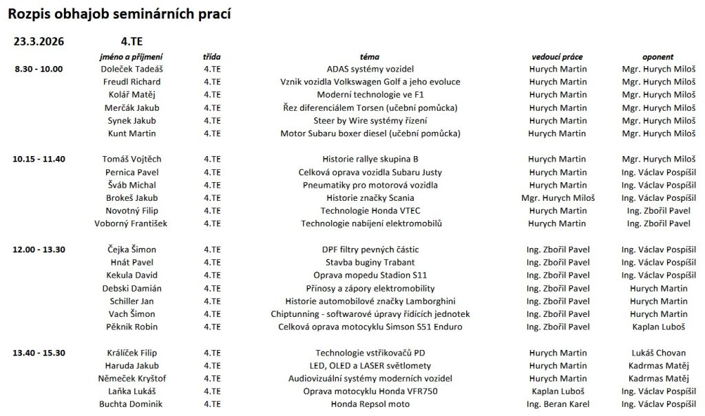 Obhajoby seminárních prací